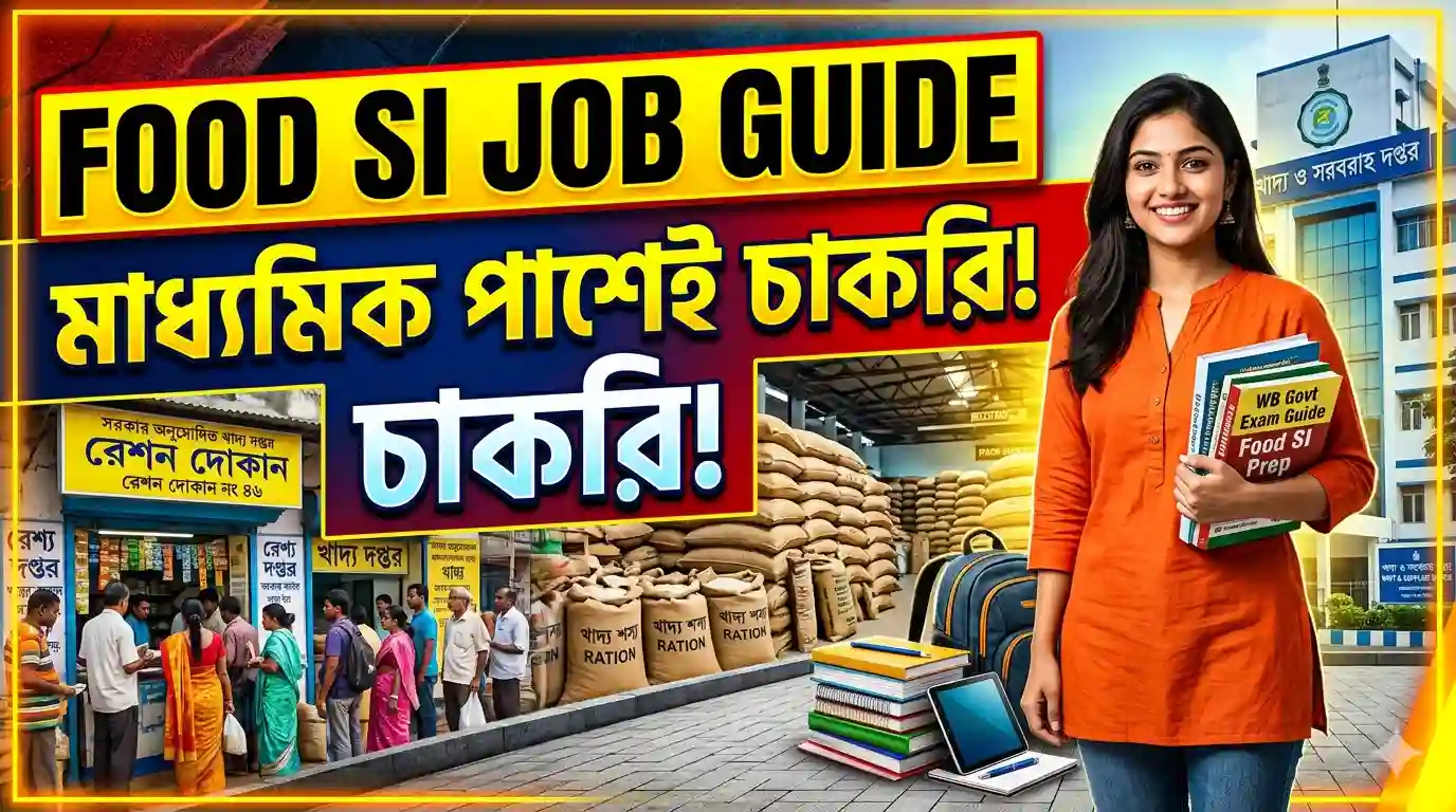 পশ্চিমবঙ্গের যে সমস্ত চাকরিপ্রার্থীরা একটি স্থায়ী ও সম্মানজনক সরকারি চাকরি খুঁজছেন, তাদের কাছে ফুড সাব-ইন্সপেক্টর (Food SI Job Guide) পরীক্ষা একটি অত্যন্ত গুরুত্বপূর্ণ সুযোগ। বিশেষ করে মাধ্যমিক পাস যোগ্যতায় এই পদটি রাজ্যের অন্যতম আকর্ষণীয় চাকরি হিসেবে ধরা হয়। এই পেশায় যেমন সামাজিক সম্মান রয়েছে, তেমনি রয়েছে ভালো বেতন, স্থায়িত্ব এবং ভবিষ্যতে প্রমোশনের সুযোগ। তাই অনেকেরই স্বপ্ন থাকে এই পদে কাজ করার। আজকের এই প্রতিবেদনে আমরা সহজ ভাষায় জানবো—ফুড সাব-ইন্সপেক্টর কীভাবে হওয়া যায়, কী কী যোগ্যতা লাগে, এবং এই পরীক্ষার সম্পূর্ণ প্রক্রিয়া কীভাবে হয়।